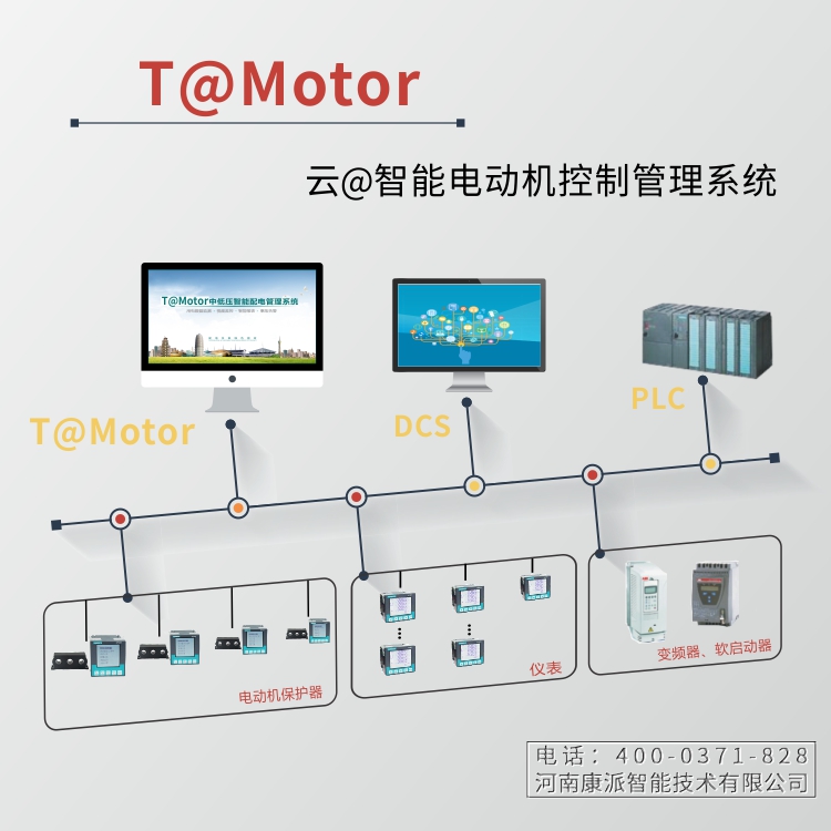 云@智能電動(dòng)機(jī)控制管理系統(tǒng)是以康派智能低壓電動(dòng)機(jī)保護(hù)控制器為基礎(chǔ),配合具有多種低壓控制總線接口的通訊管理機(jī),使低壓電動(dòng)機(jī)接受來自DSC的監(jiān)控,并將各種關(guān)于低壓電動(dòng)機(jī)的運(yùn)行數(shù)據(jù)傳輸?shù)诫姎庀到y(tǒng)監(jiān)控主機(jī),通過數(shù)據(jù)分析為低壓電動(dòng)機(jī)的保護(hù)、控制、管理提供整體解決方案。