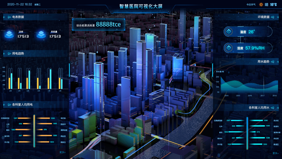 打造醫(yī)院的大數(shù)據(jù)及能源管理大屏展示系統(tǒng),實(shí)現(xiàn)數(shù)據(jù)的管理和展現(xiàn),要求平臺(tái)具有優(yōu)秀的適應(yīng)性和擴(kuò)展性,以適應(yīng)不同業(yè)務(wù)場(chǎng)景的數(shù)據(jù)需求。