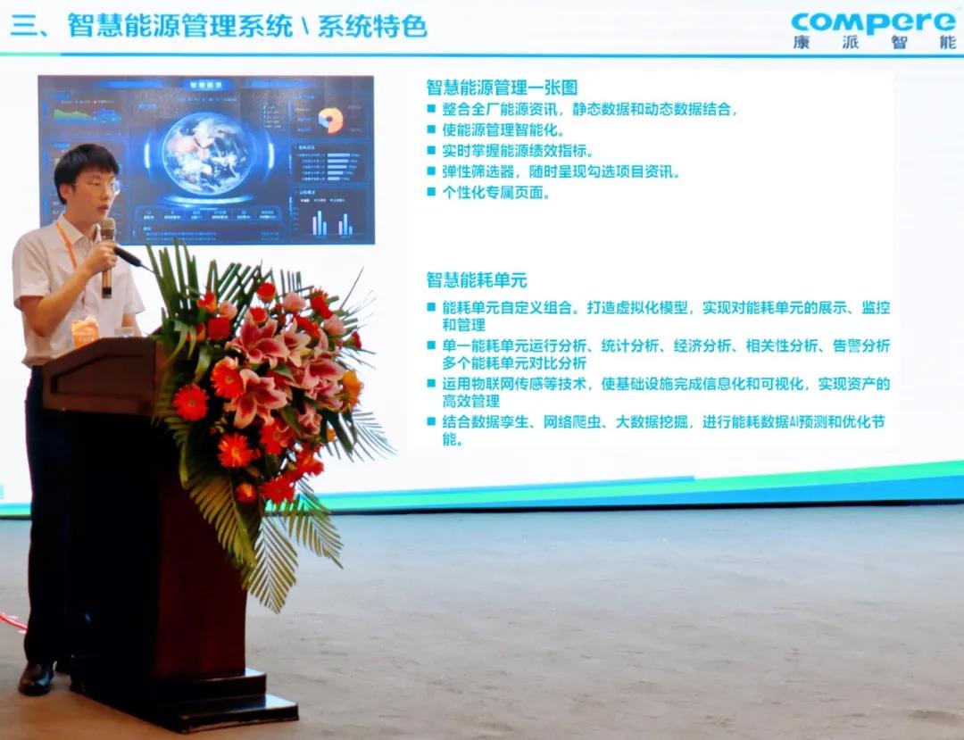 在企業(yè)演講環(huán)節(jié),康派智能產(chǎn)品經(jīng)理黃森先生代表公司做專題演講,針對(duì)智慧能源管理系統(tǒng)的建設(shè)與應(yīng)用問題進(jìn)行講解,并以